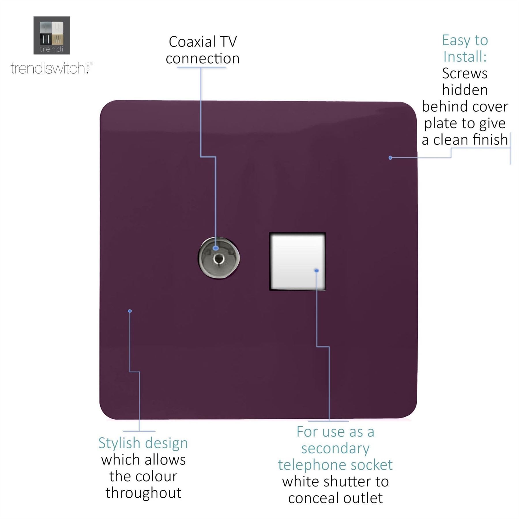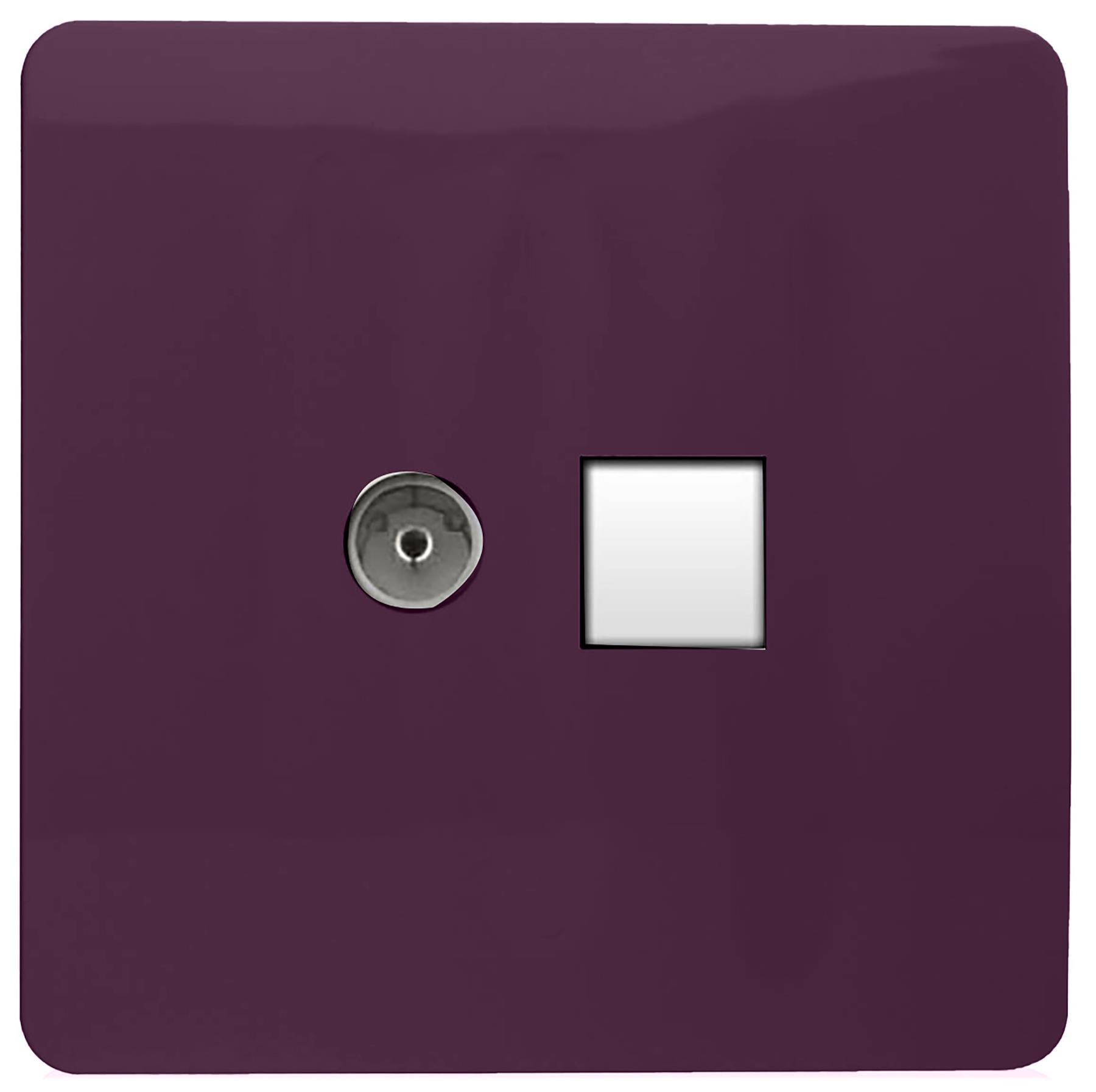 Trendi Artistic Modern Glossy Tactile TV Co-axial Socket + Telephone Socket Plum
