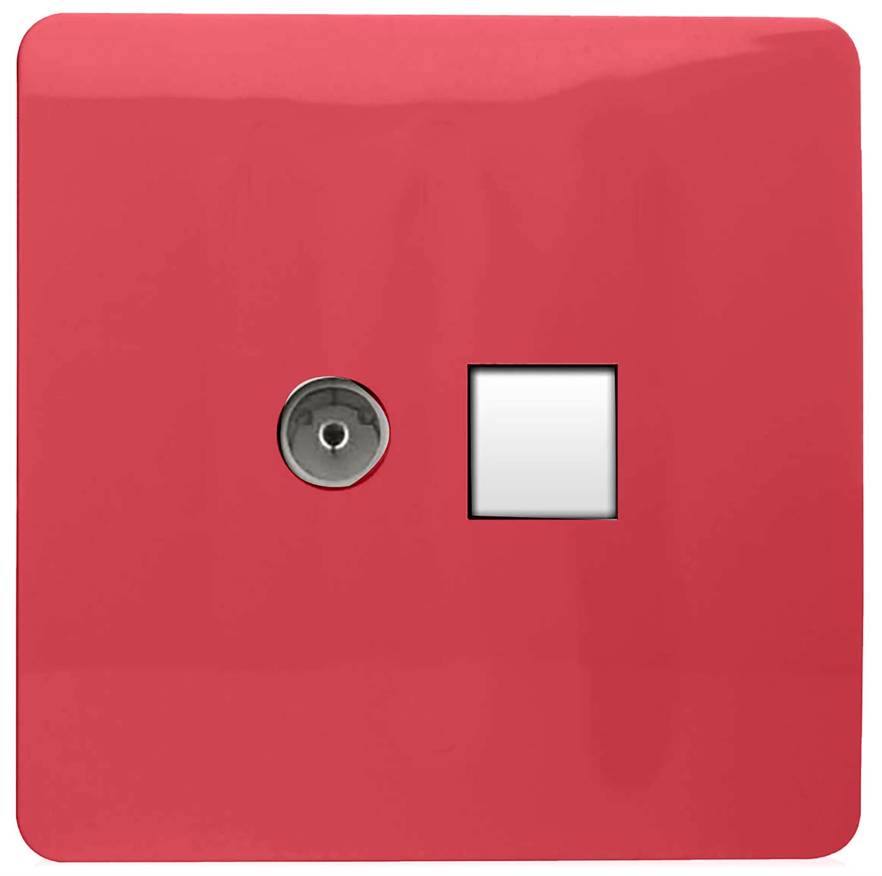 Trendi Artistic Modern Glossy Tactile TV Co-axial Socket + Telephone Socket Strawberry