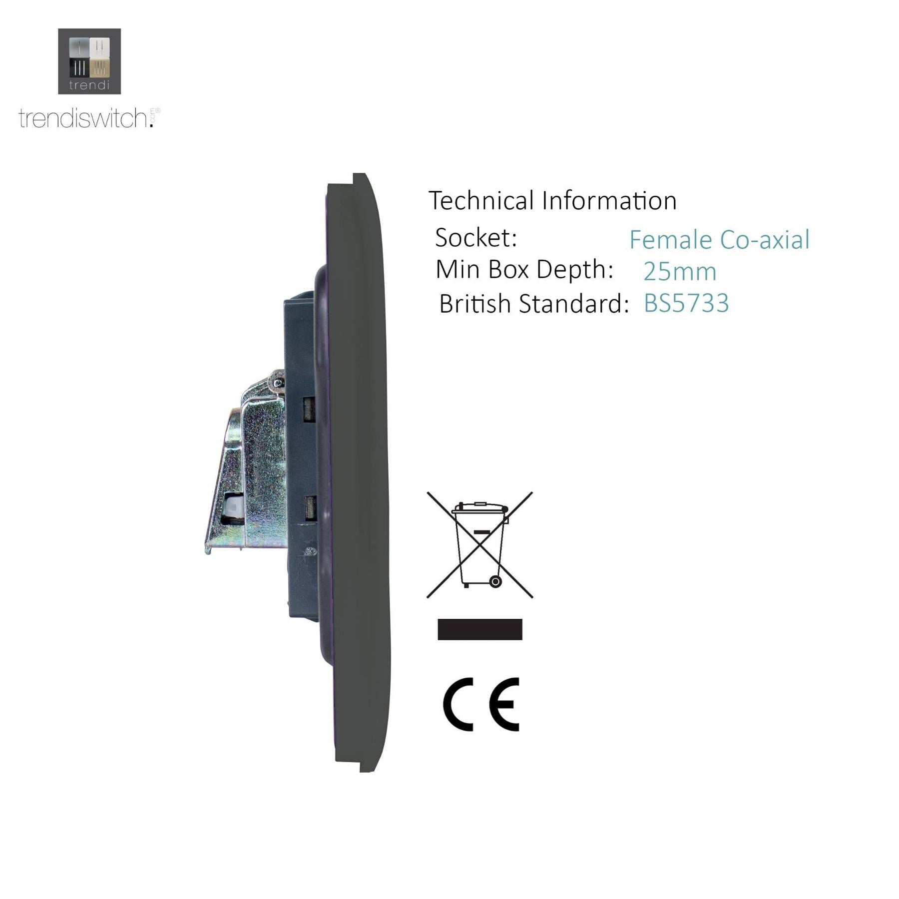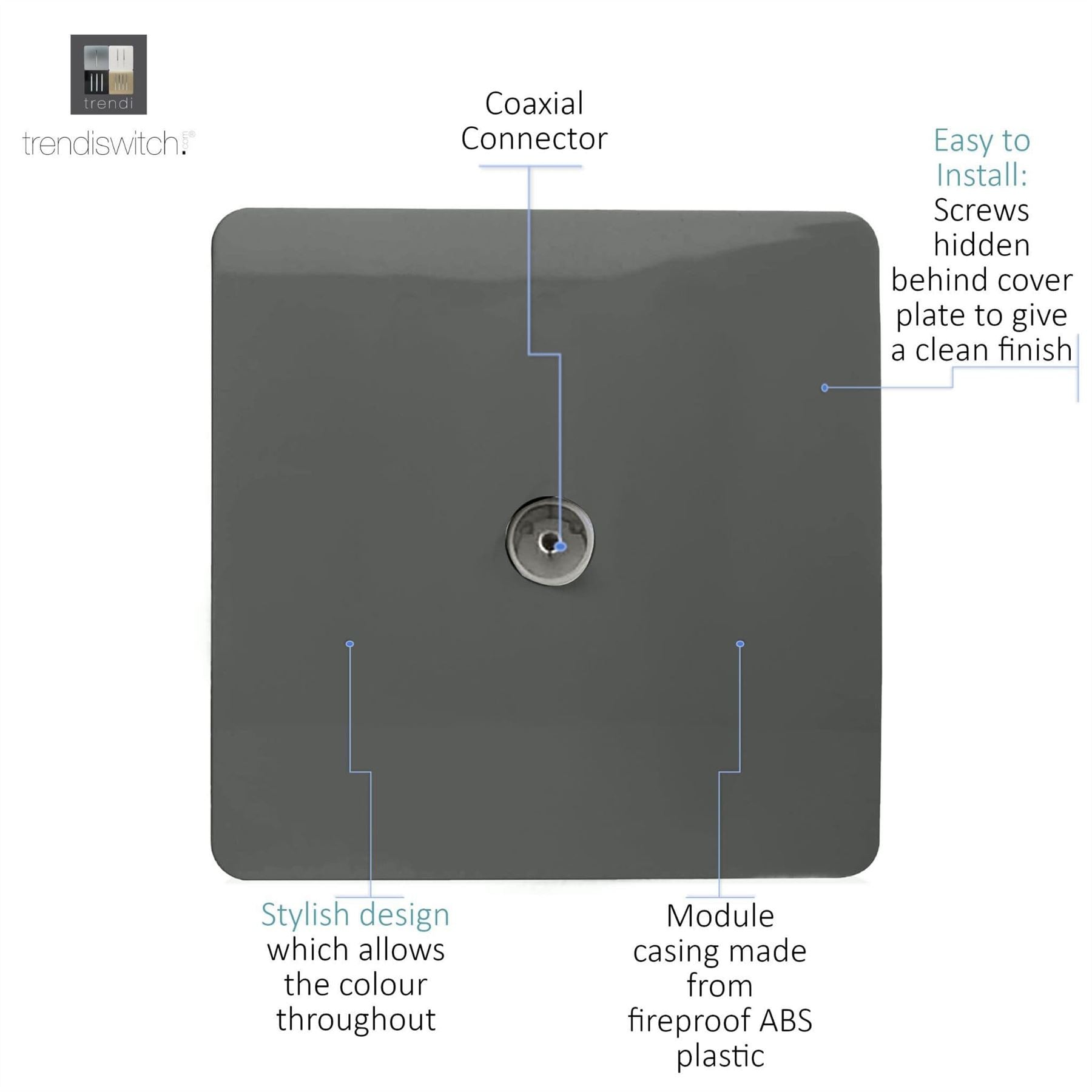 Trendi Artistic Modern Glossy Tactile TV Socket Charcoal