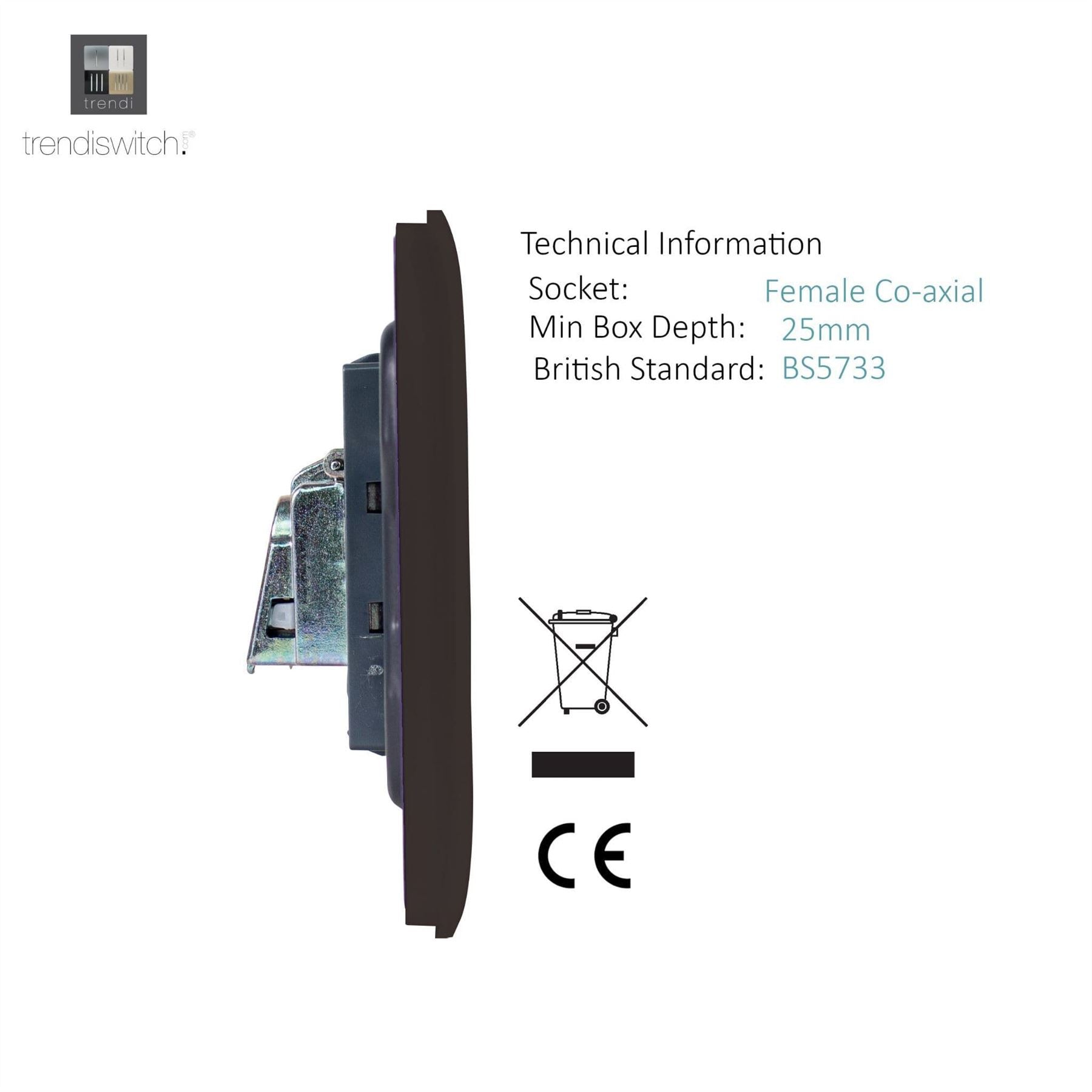 - TV socket for use with male co-axial plugs