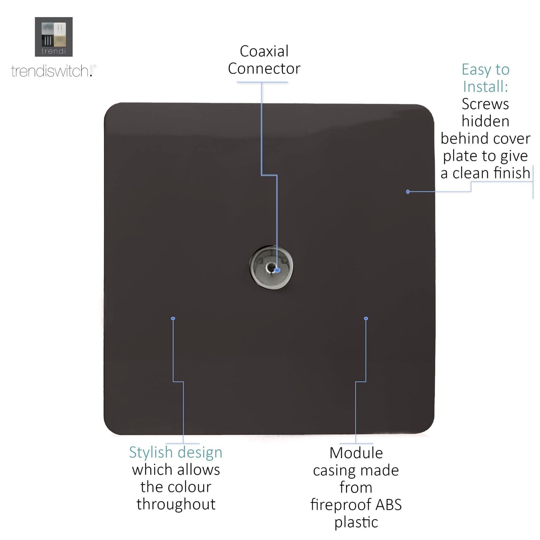 Trendi Artistic Modern Glossy Tactile TV Socket Dark Brown