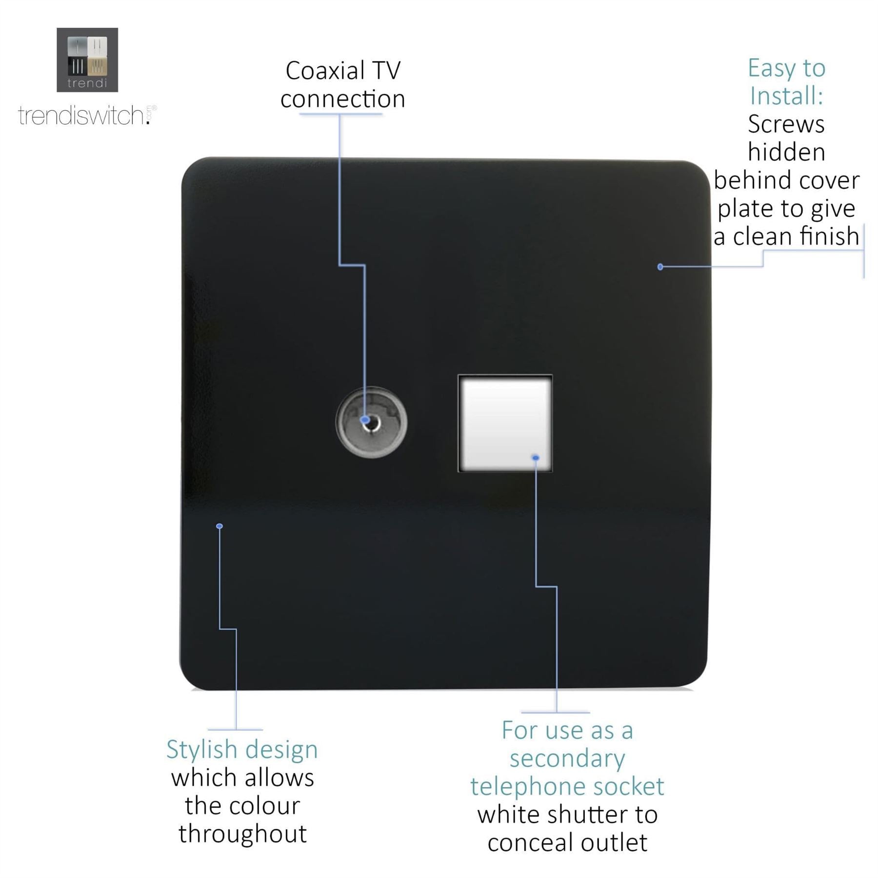Trendi Artistic Modern TV Co-axial Socket + Telephone Socket Black ART-TLP+TVBL