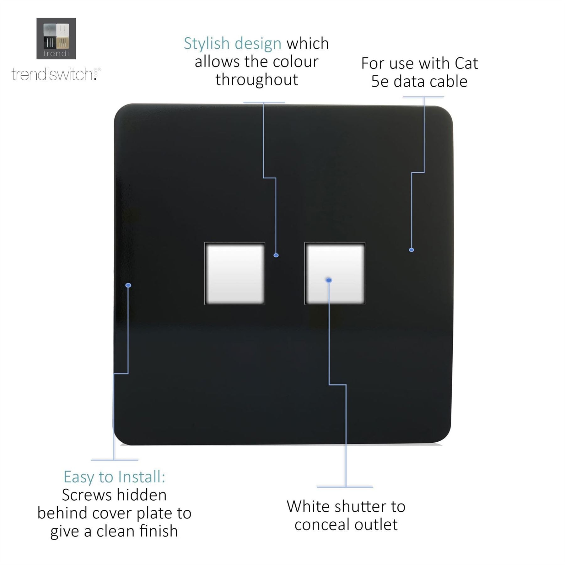 Trendi Modern 2 Gang RJ45 Cat 5e & Cat 6 PC Ethernet Socket Black ART-2PCBL