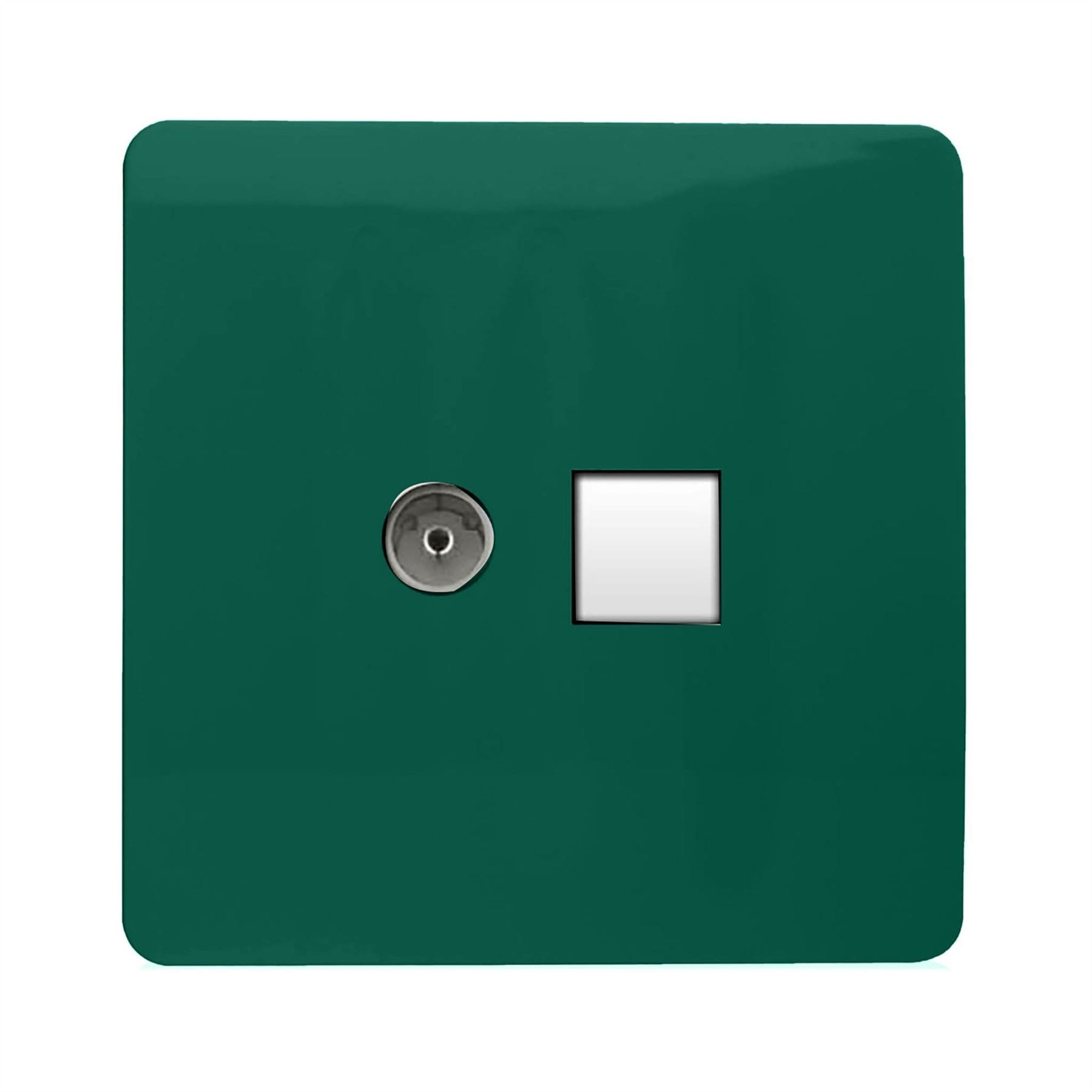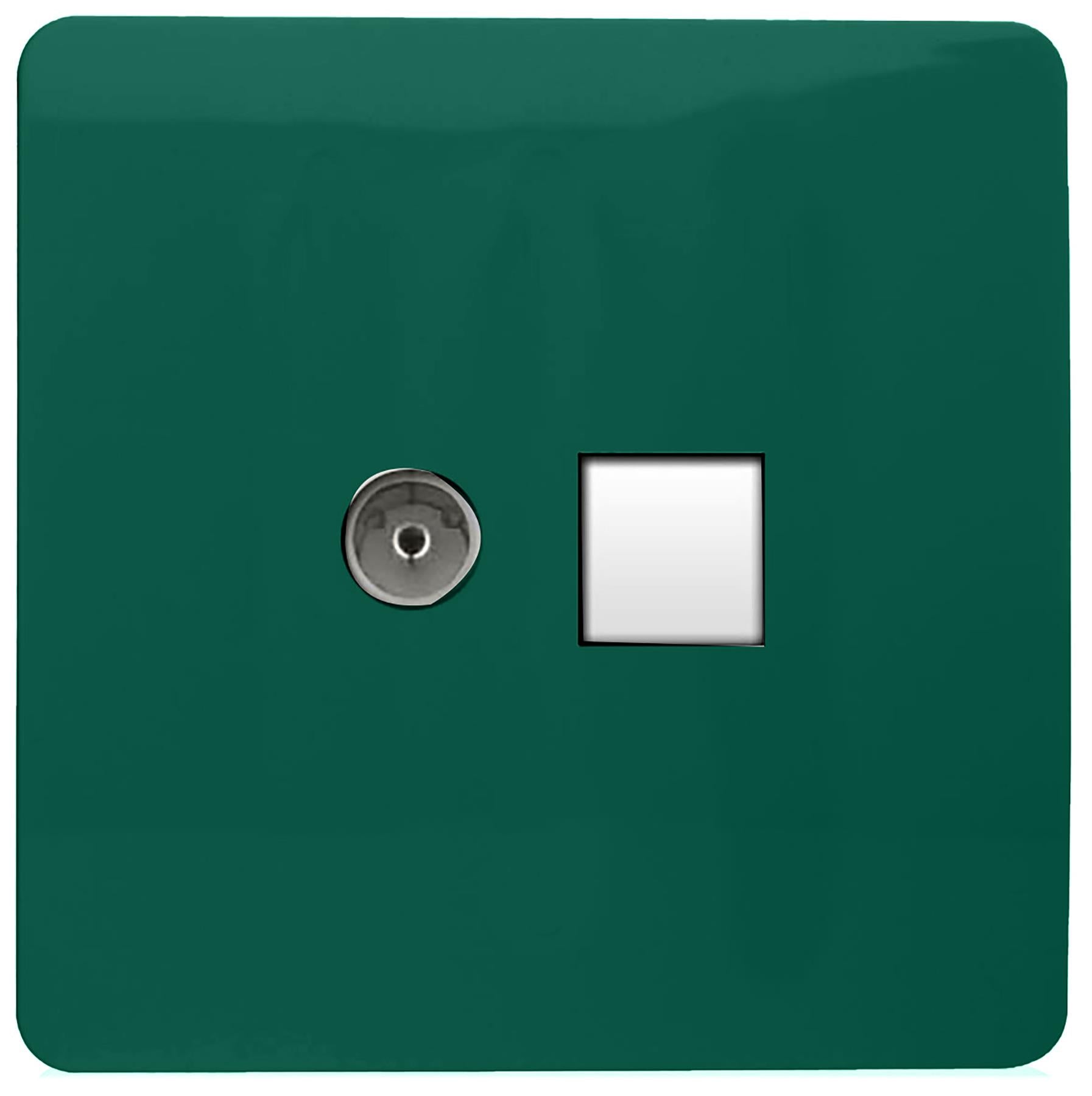 Trendi Modern Glossy Tactile TV Co-axial Socket+RJ45 Cat 5e&Cat 6 PC Ethernet Socket Dark Green