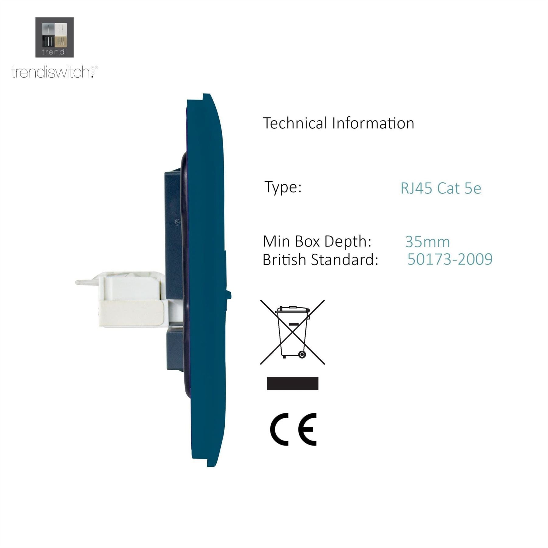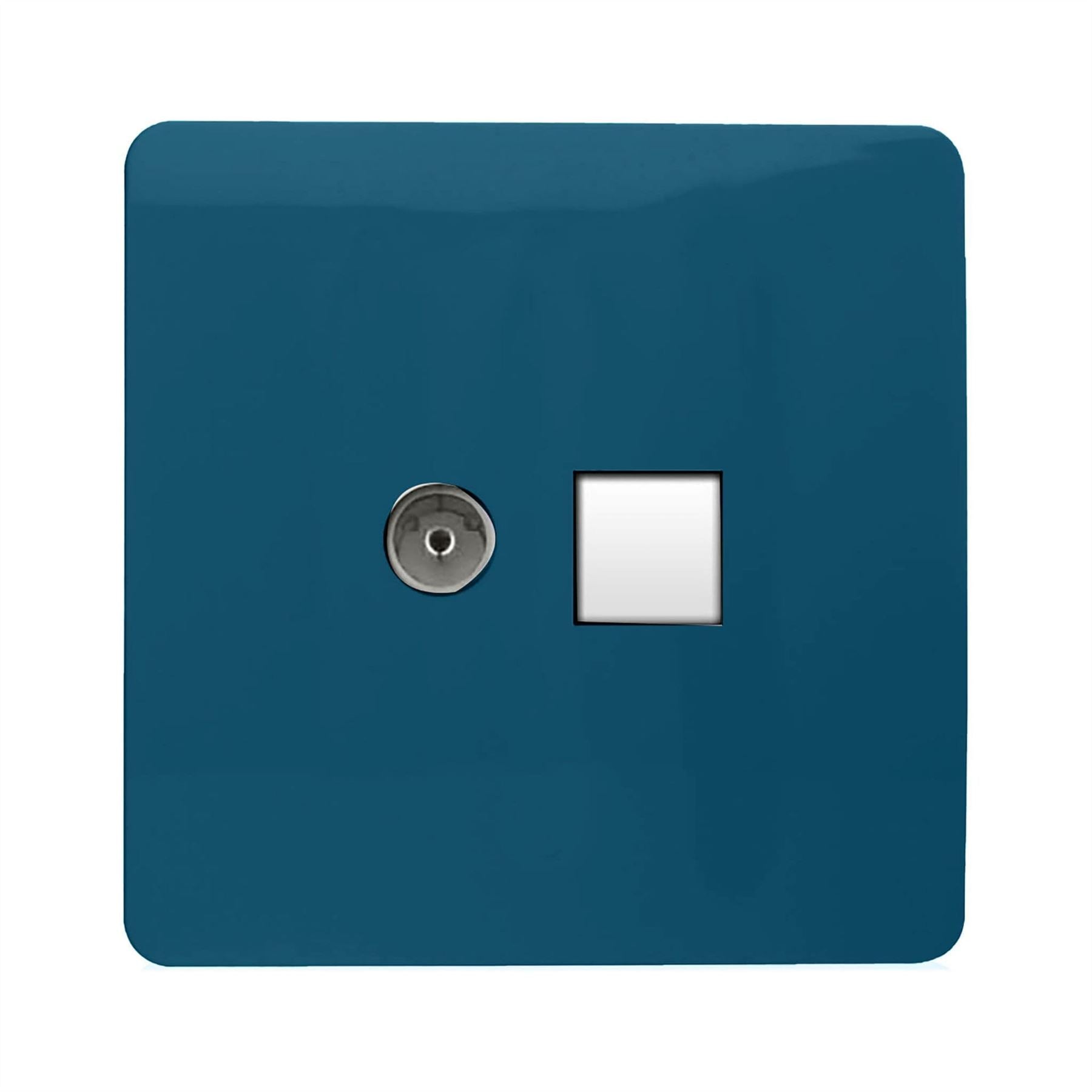 Trendi Modern Glossy Tactile TV Co-axial Socket+RJ45 Cat 5e&Cat 6 PC Ethernet Socket Midnight Blue