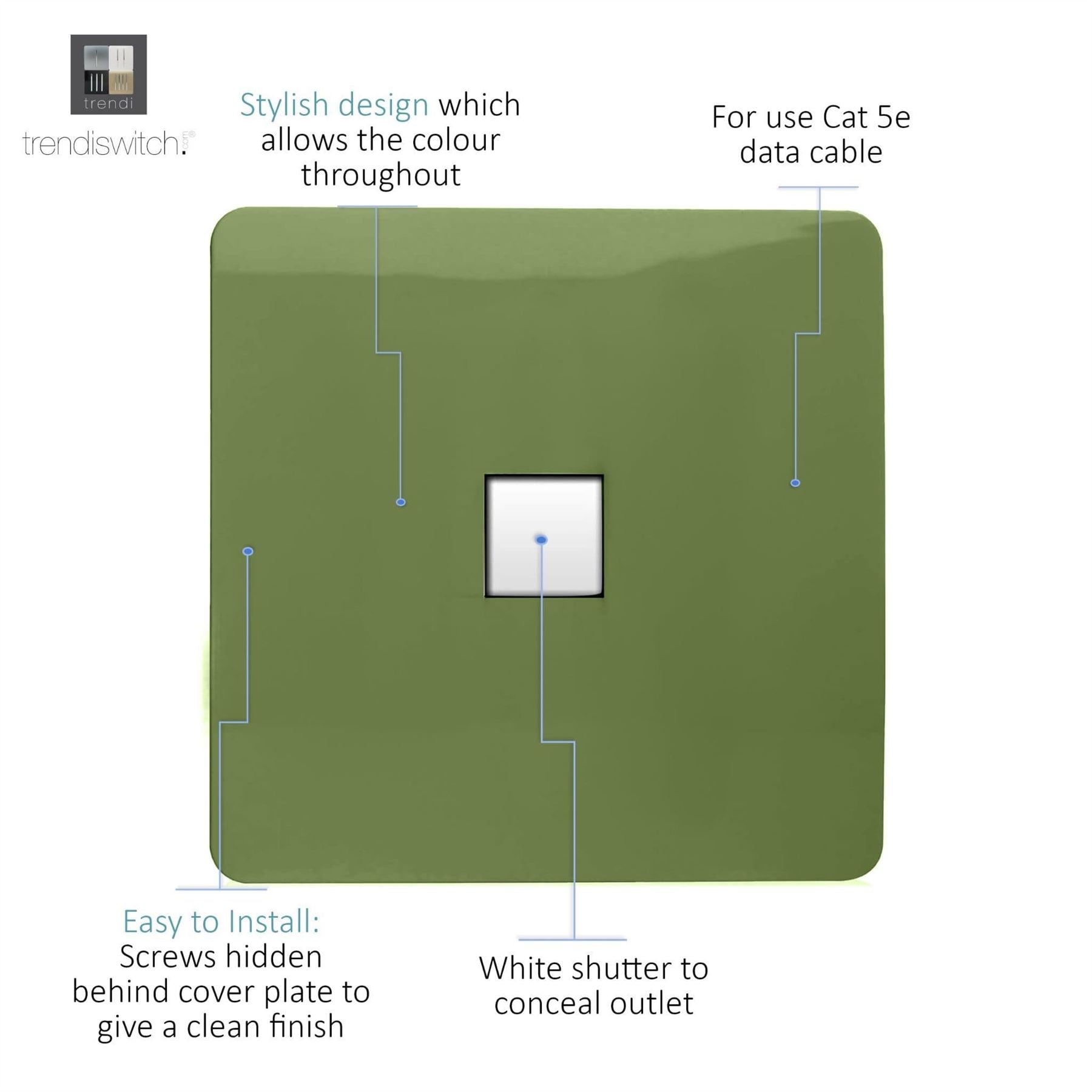 Trendi Modern Glossy Tactile TV Co-axial Socket+RJ45 Cat 5e&Cat 6 PC Ethernet Socket Moss Green
