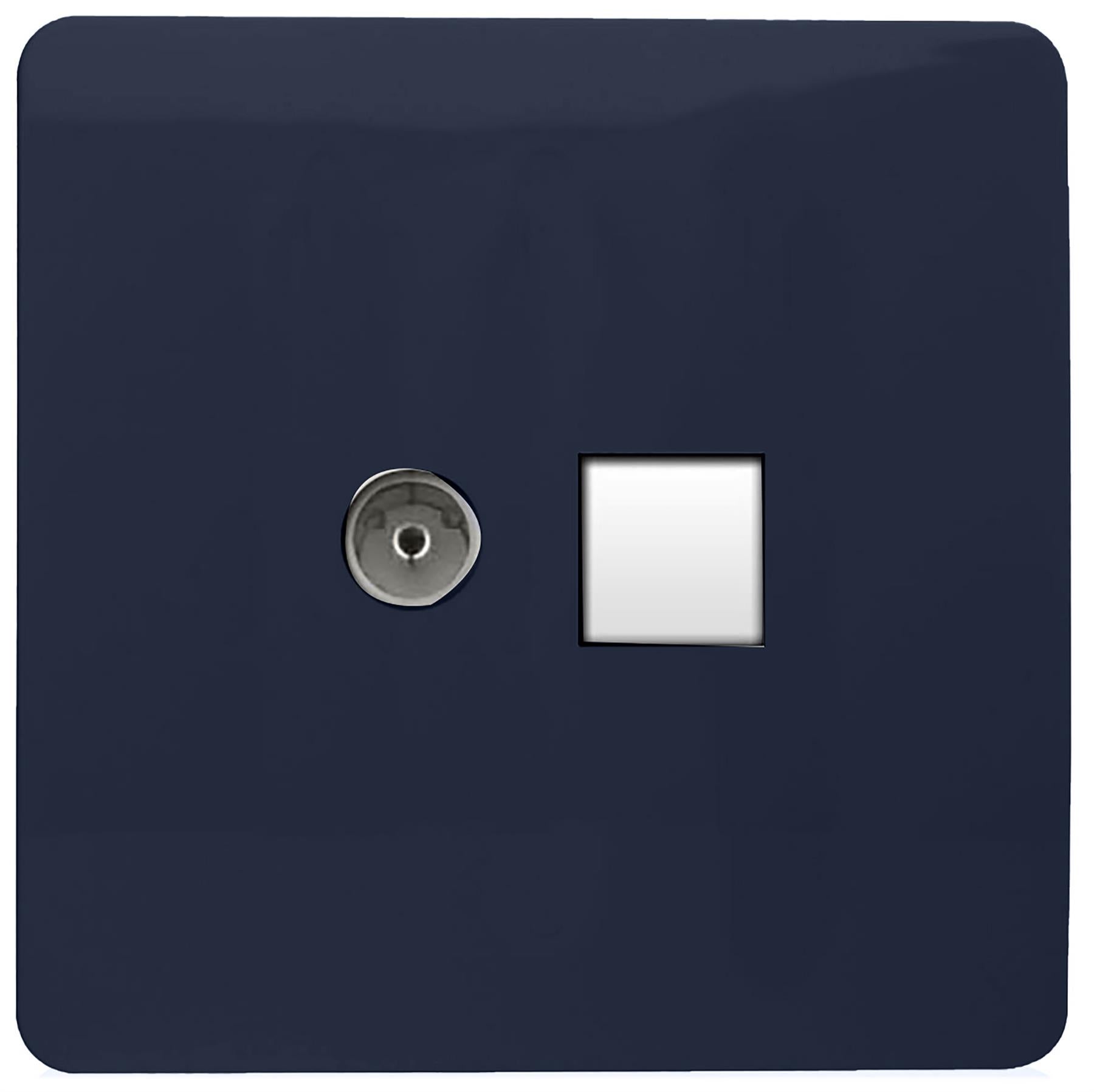 Trendi Modern Glossy Tactile TV Co-axial Socket+RJ45 Cat 5e&Cat 6 PC Ethernet Socket Navy