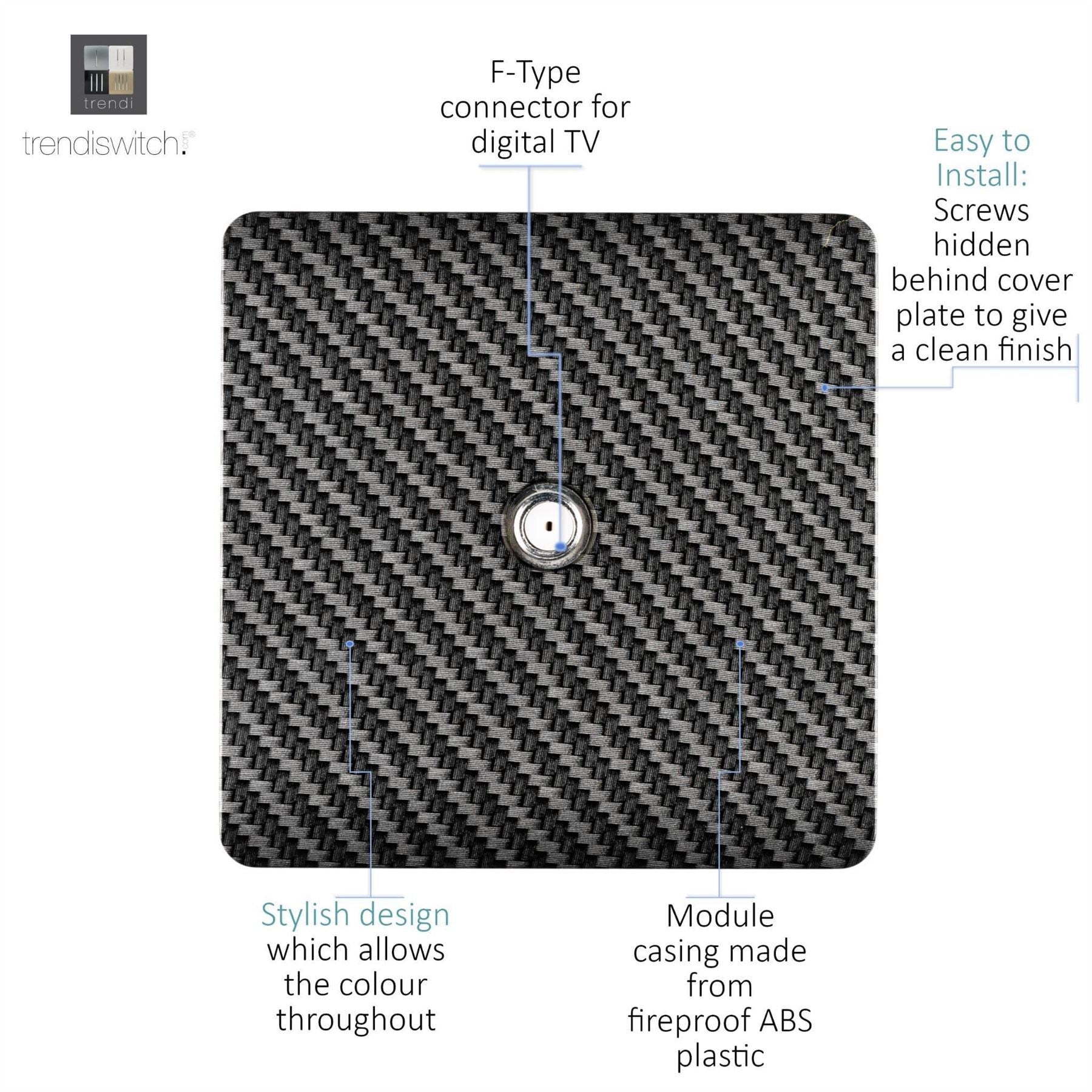Trendi Switch 1 Gang Male F-Type Satellite Modern Designer Television Socket in Carbon Fibre
