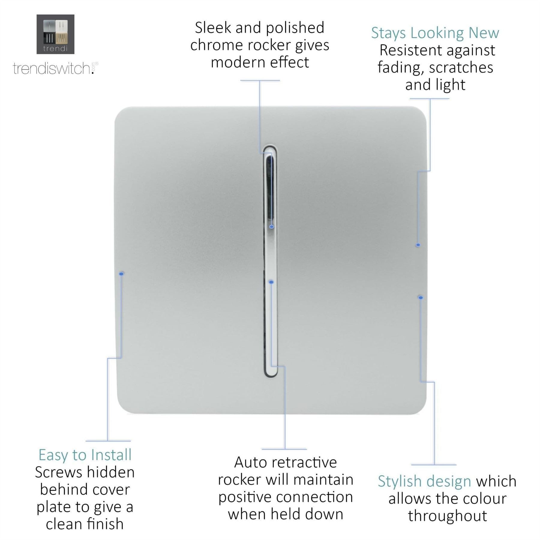 Trendi Switch 1 Gang Retractive Switch Silver