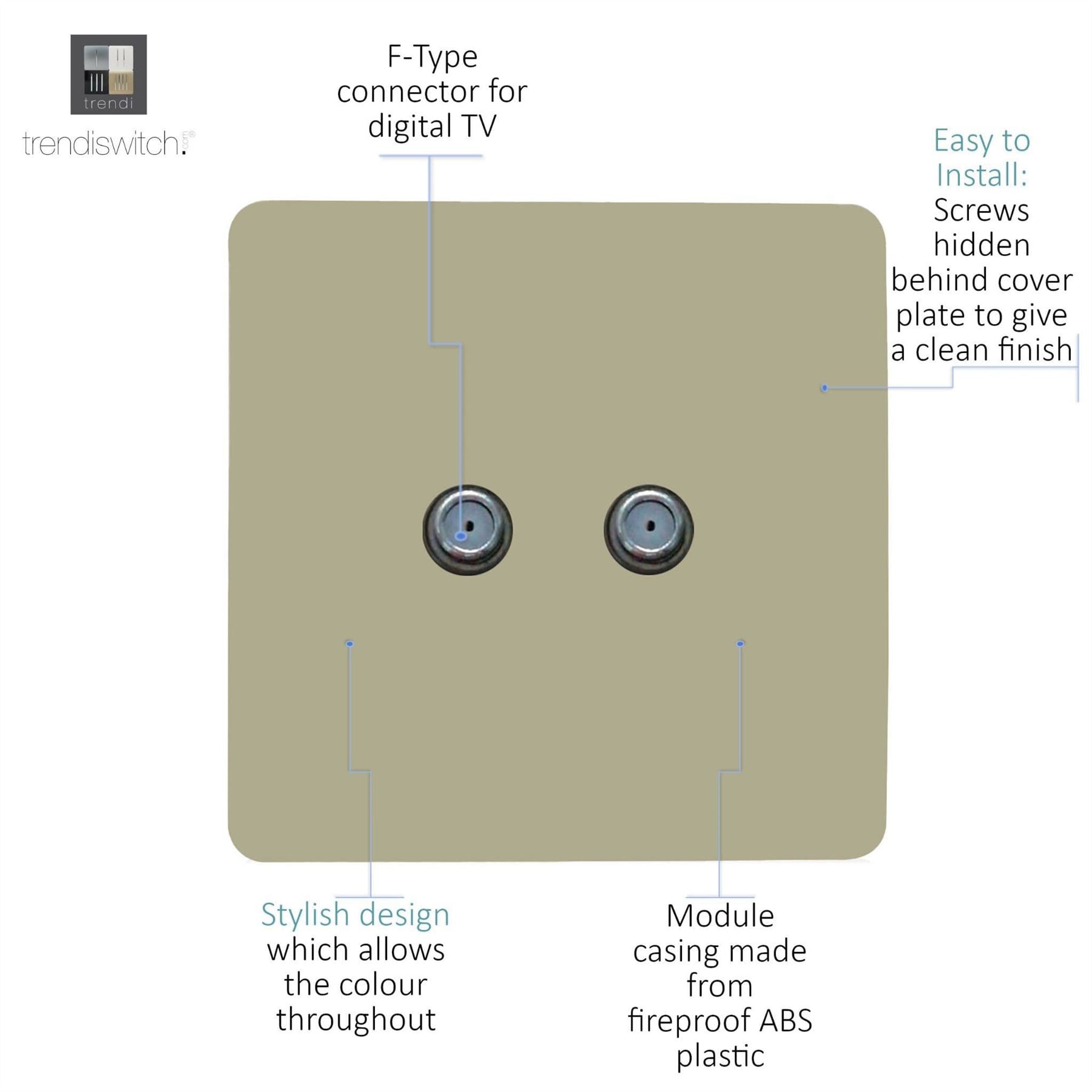 Trendi Switch 2 Gang Male F-Type Satellite Television Socket in Champagne Gold