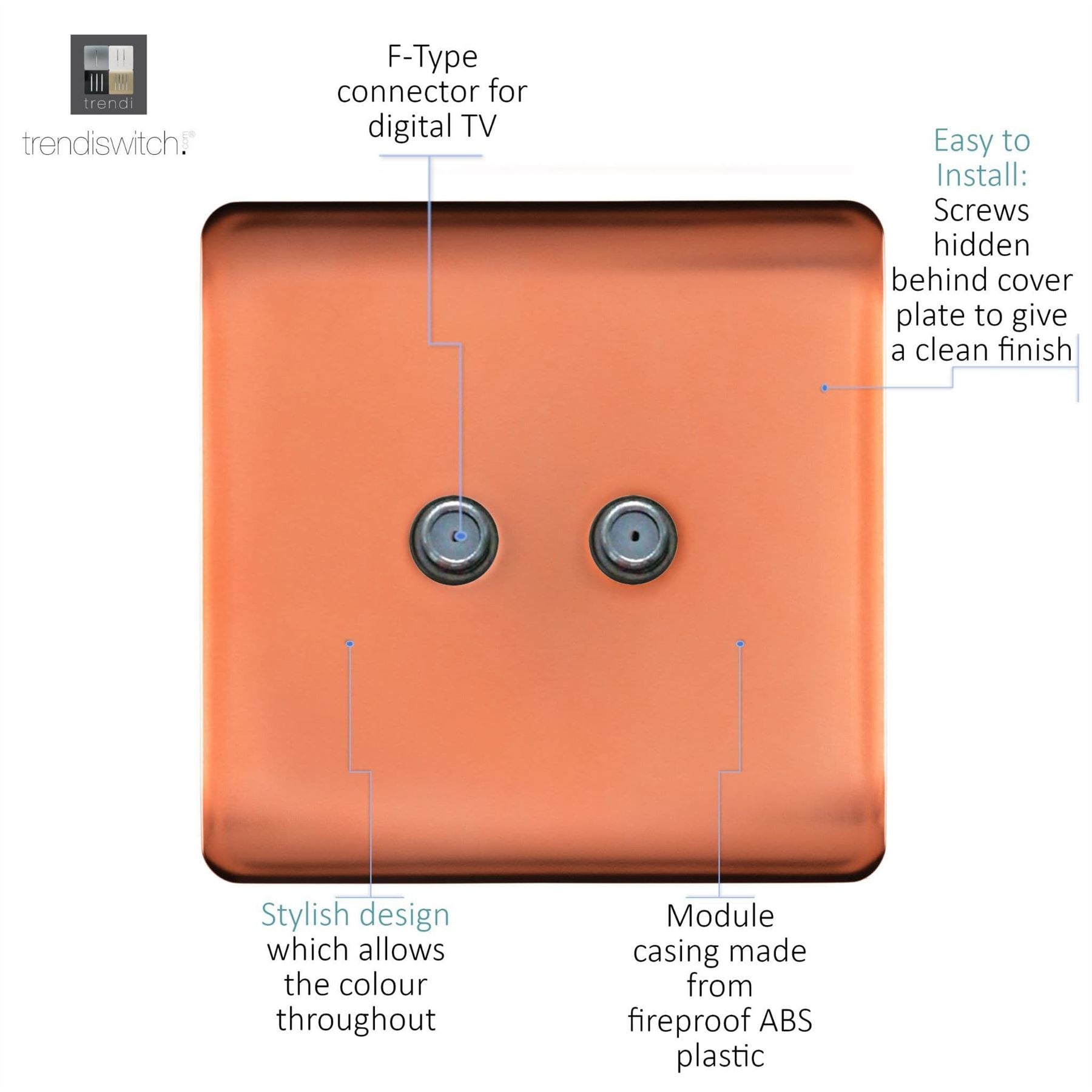 Trendi Switch 2 Gang Male F-Type Satellite Television Socket in Copper