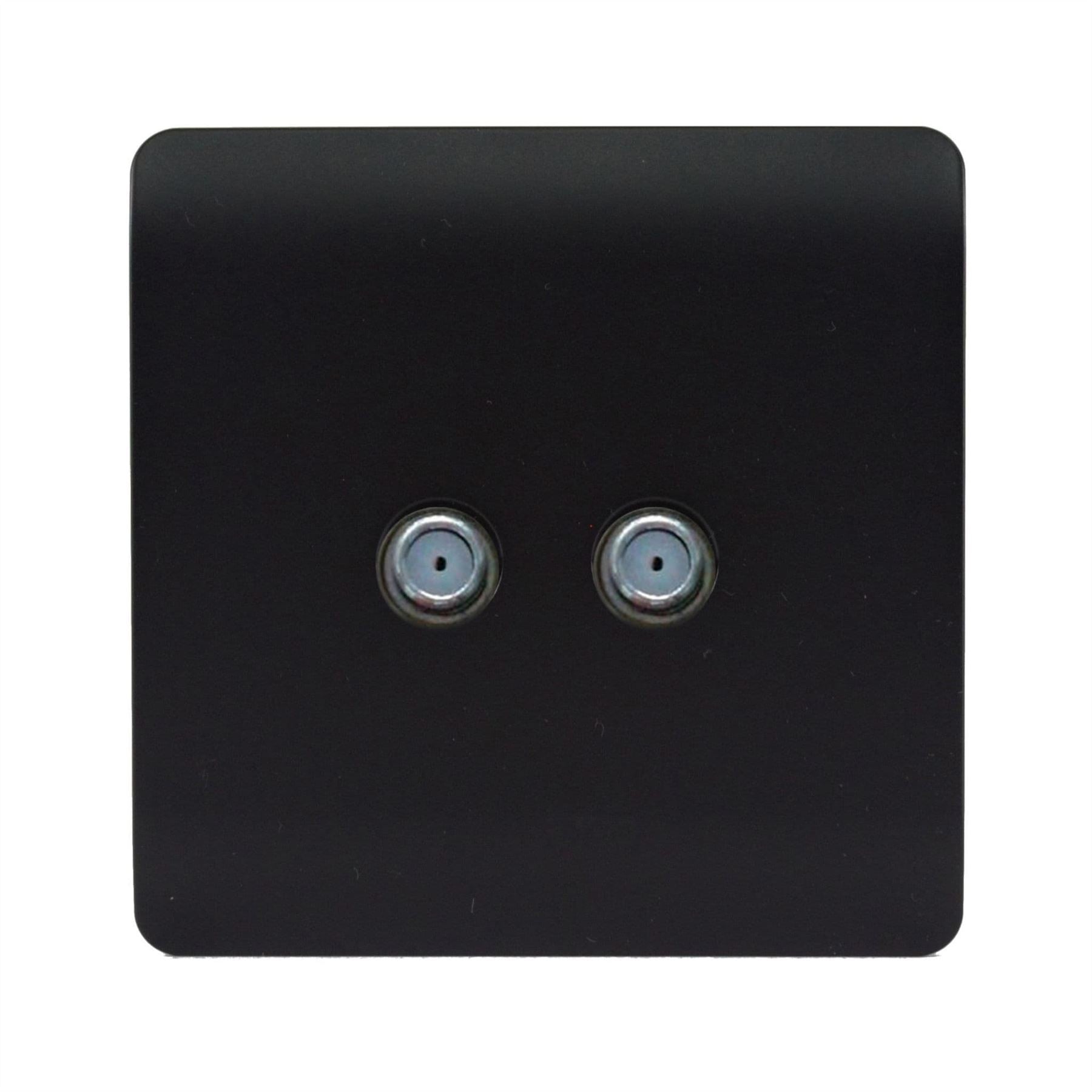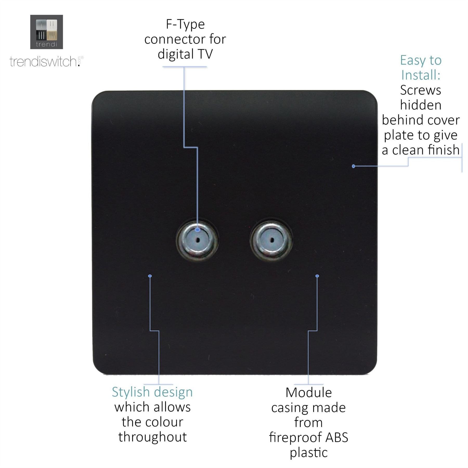 Trendi Switch 2 Gang Male F-Type Satellite Television Socket in Matt Black