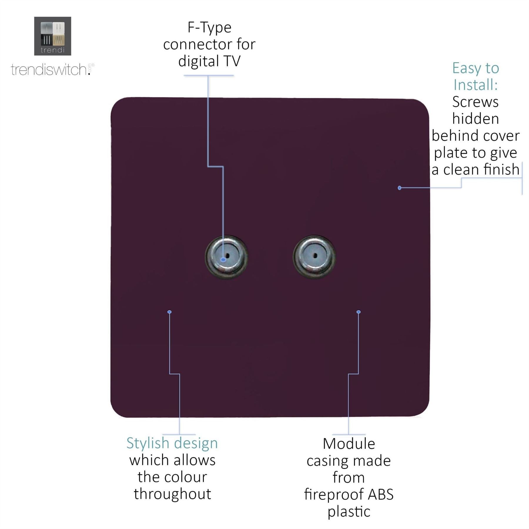 Trendi Switch 2 Gang Male F-Type Satellite Television Socket in Plum