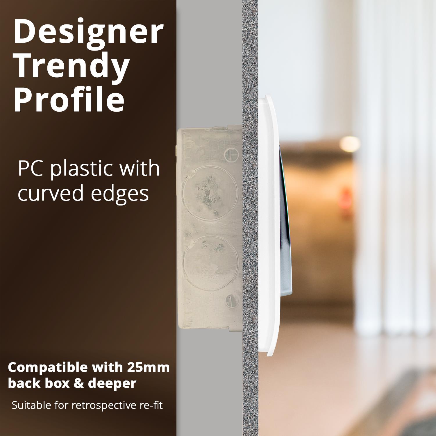 RECOMMENDED BACK BOX: 25mm or above