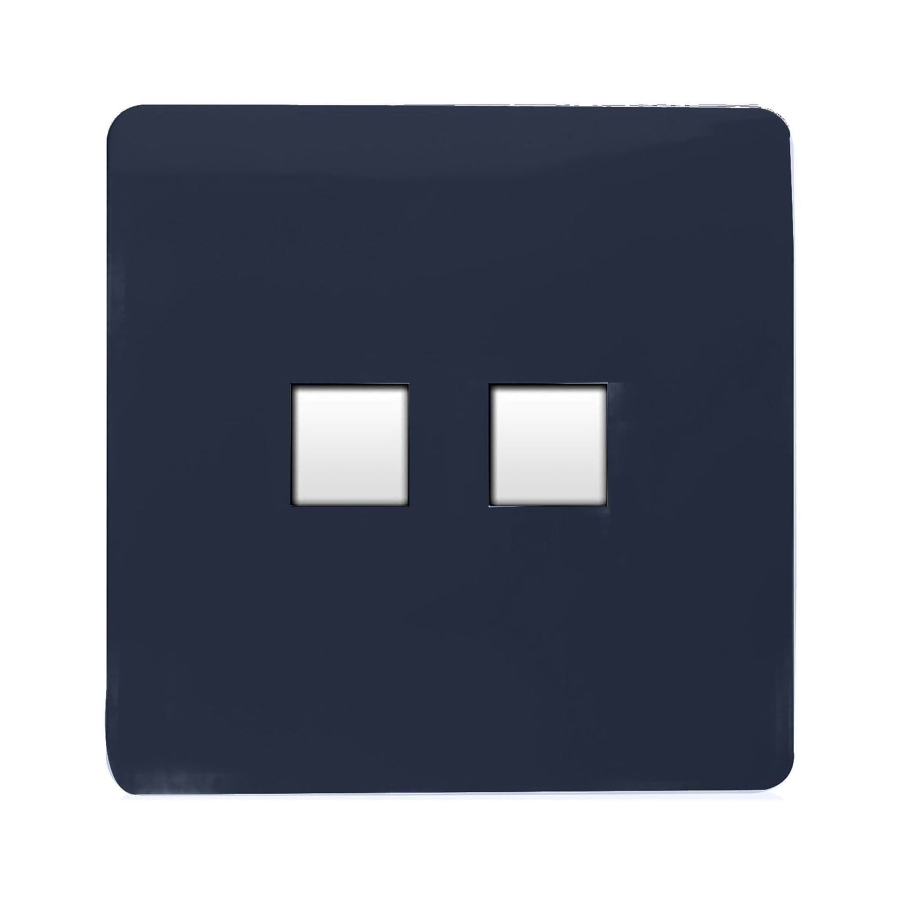 Trendi Switch 2 Gang RJ45 Cat 6 PC Ethernet & Modern Designer Telephone Slave Sockets in Navy