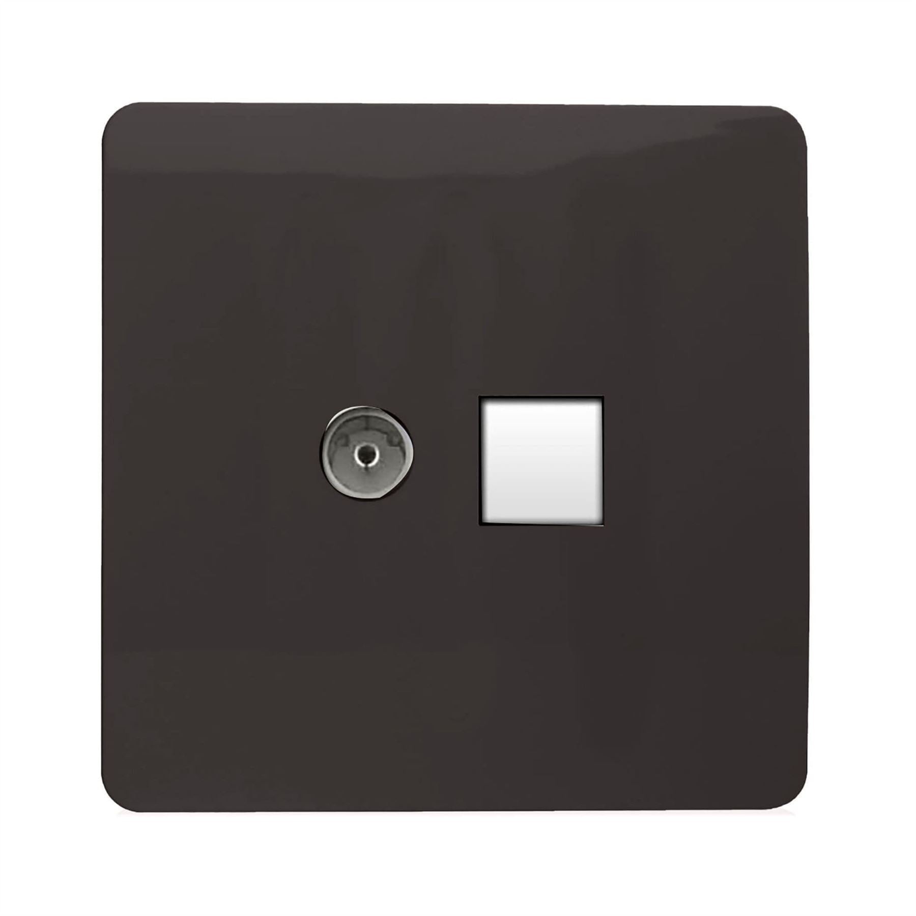Trendi Switch 2 Gang TV Co-Axial & RJ45 Cat 6 Modern Designer PC Ethernet Sockets in Dark Brown