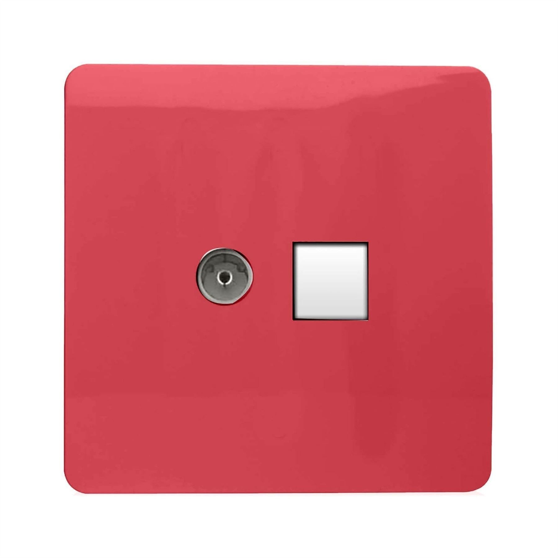 Trendi Switch 2 Gang TV Co-Axial & RJ45 Cat 6 Modern Designer PC Ethernet Sockets in Strawberry