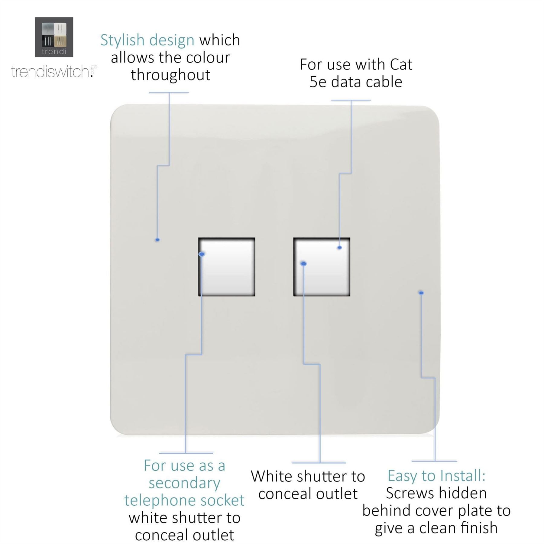 Trendi Telephone Socket + Cat 5e & Cat 6 RJ45 PC Socket White ART-TLP+PCWH