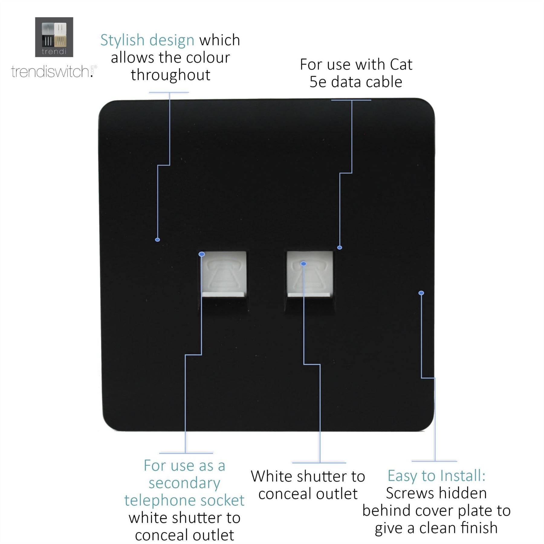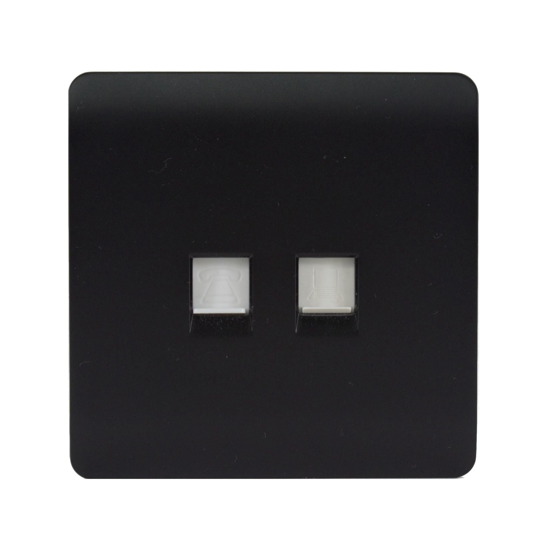 Trendi Telephone Socket + RJ45 Cat 5e & Cat 6 PC Socket Matt Black